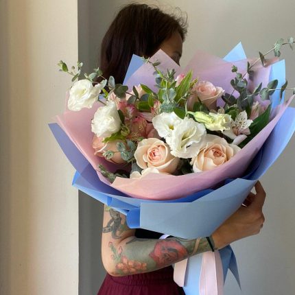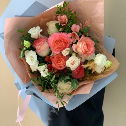 Букет из 25 разноцветных альстромерий в стильной упаковке “Яркие искры”