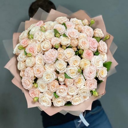7 кустовых пионовидных роз сильва пинк с эвкалиптом. Букет 25 KimFlo