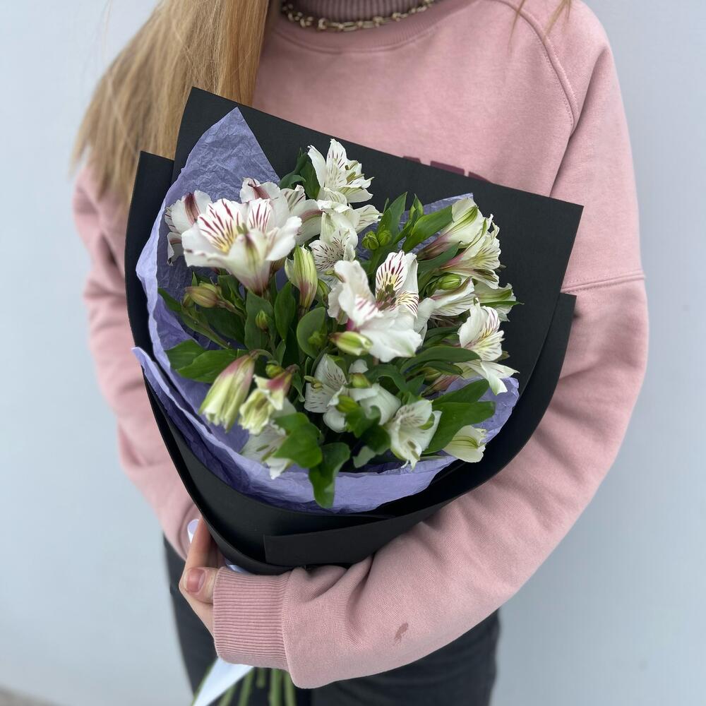 Альстромерия – 7 шт.Лента атласная – 1 шт.Тишью – 1 шт.Фоамиран (упаковка) – 1 шт.