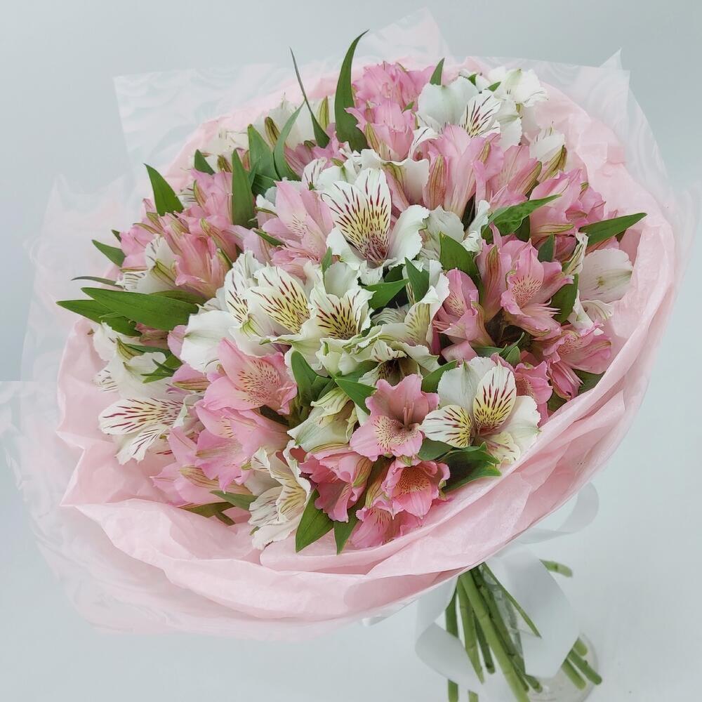 Альстромерия – 19 шт. Упаковка дизайнерская – 1 шт. Открыточка с вашими пожеланиями – 1 шт. доставка – 1 шт. инструкция по уходу за цветами – 1 шт.