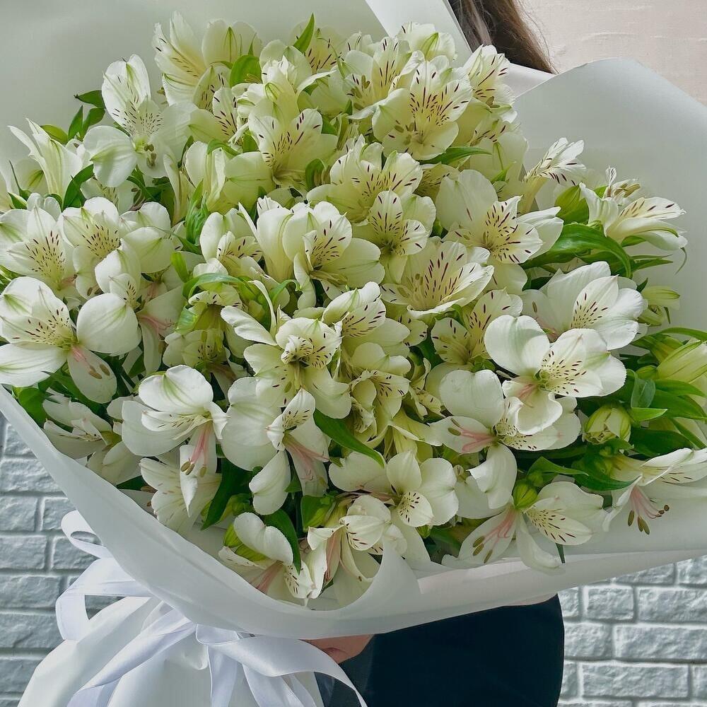 Альстромерия – 31 шт.Упаковка матовая – 1 шт.Лента атласная – 1 шт.