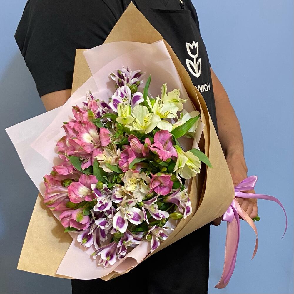 альстромерия микс – 11 шт.Упаковка крафт – 1 шт.Лента атласная – 1 шт.