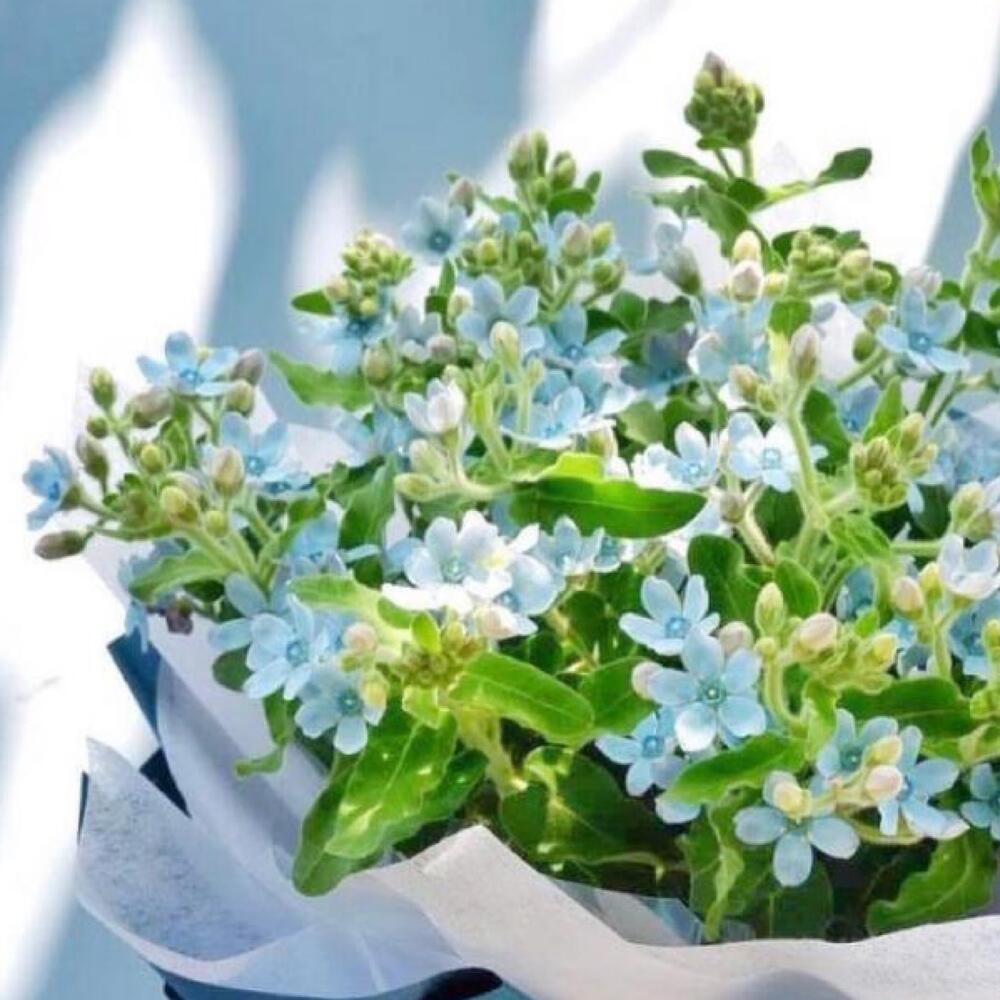 твидия голубая – 25 шт.Упаковка дизайнерская – 2 шт.Лента атласная – 2 шт.Открыточка с вашими пожеланиями – 1 шт.хорошее настроение – 100 шт.инструкция по уходу за цветами – 1 шт.коробка переноска – 1 шт.Кризал – 1 шт.