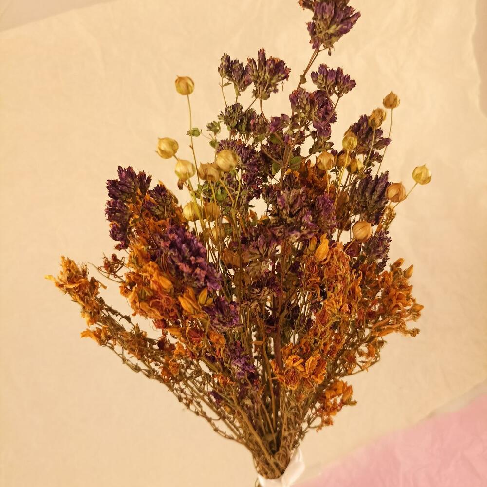 «Лавандовое созвездие» Букет из розы, гвоздики, статица и хлопка