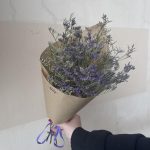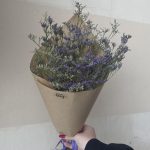 «Лавандовое созвездие» Букет из розы, гвоздики, статица и хлопка