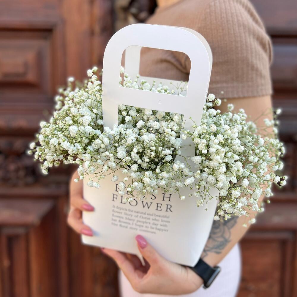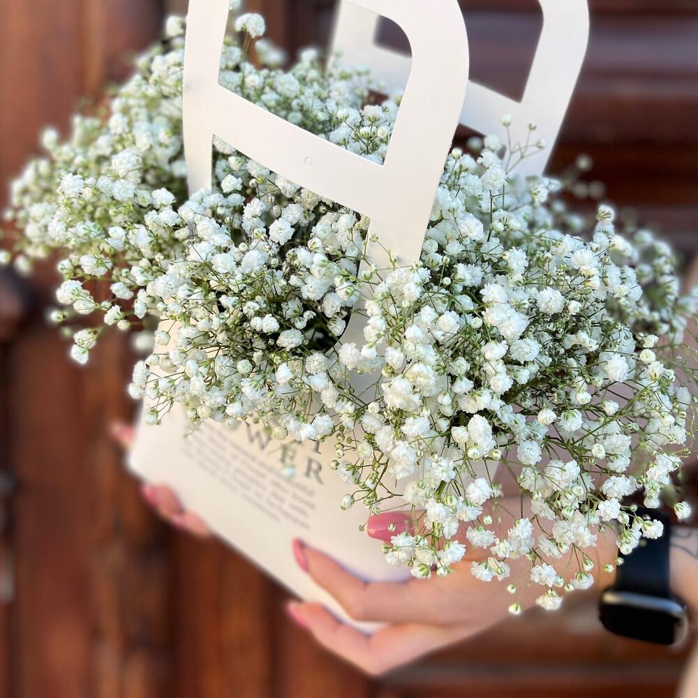 Гипсофила – 5 шт.Оазис флористический – 1 шт.Сумка крафт – 1 шт.