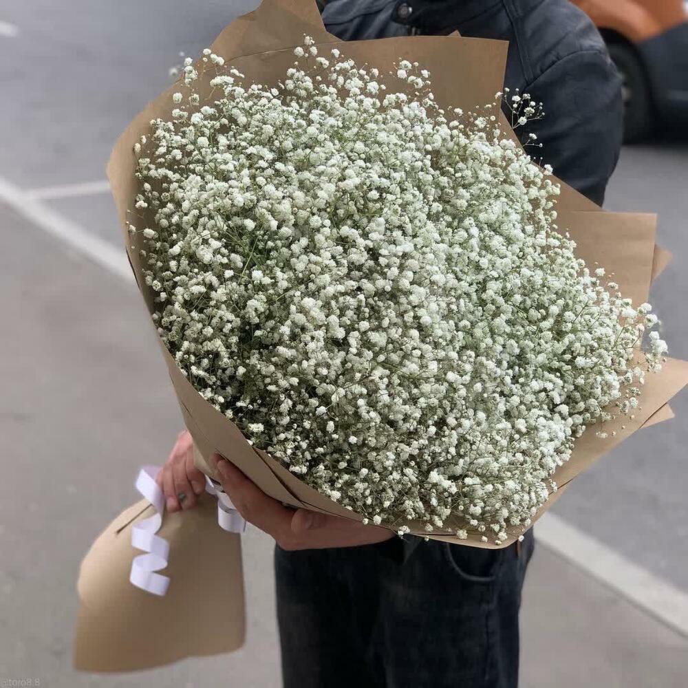 гипсофила белая – 25 шт.Крафт – 1 шт.Лента – 1 шт.