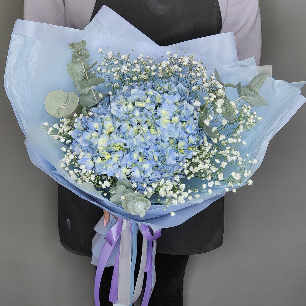 Букет из гортензии, гипсофилы и ароматного эвкалипта