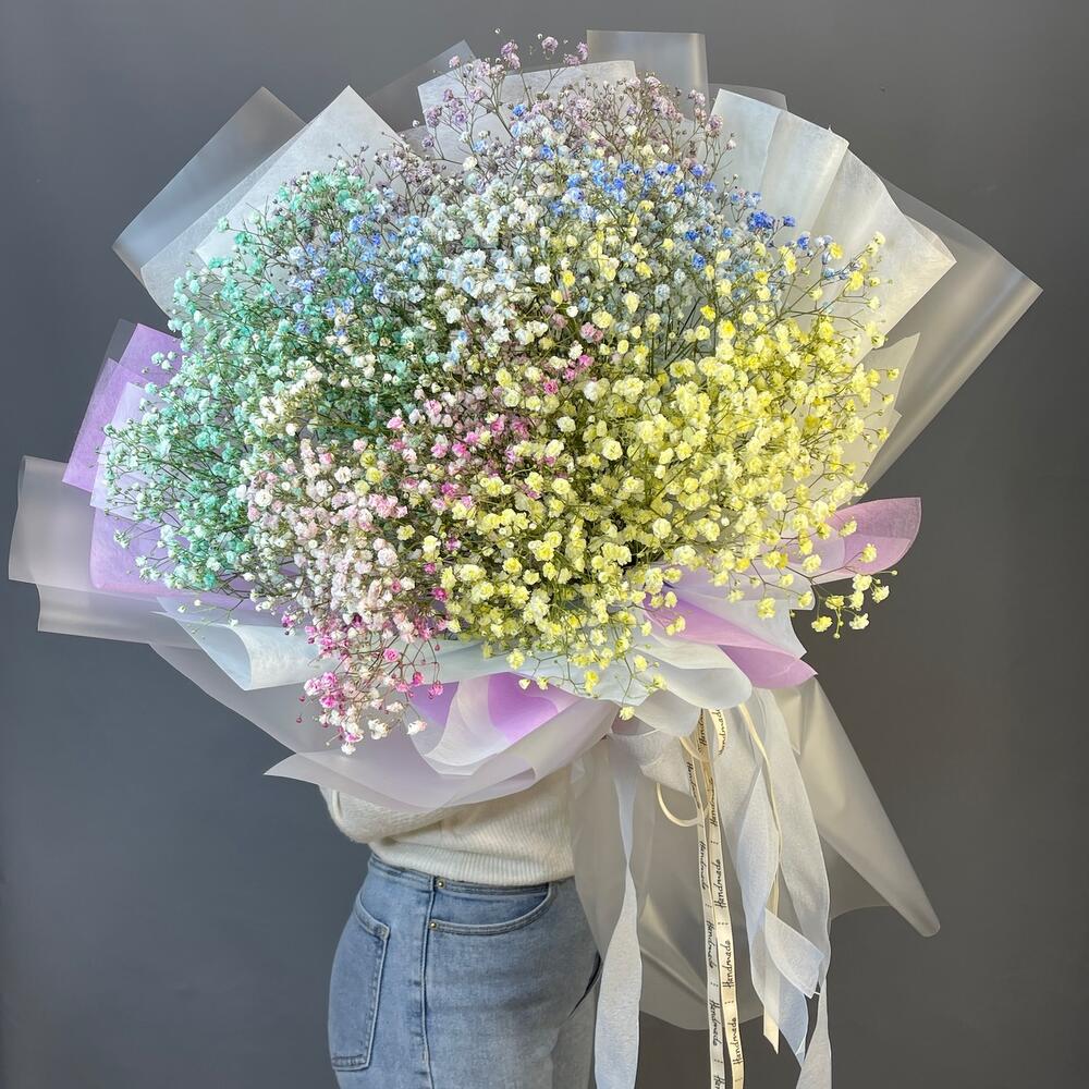 Букет с разноцветной гипсофилой «Радужное облачко»