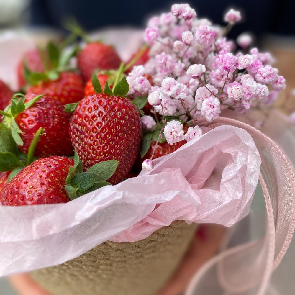 Гипсофила – 1 шт.Кашпо плетеное – 1 шт.Клубника грамм – 450 шт.