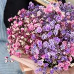 «Лавандовое созвездие» Букет из розы, гвоздики, статица и хлопка