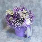 “Сиреневый туман” – композиция из гипсофилы в шляпной коробке
