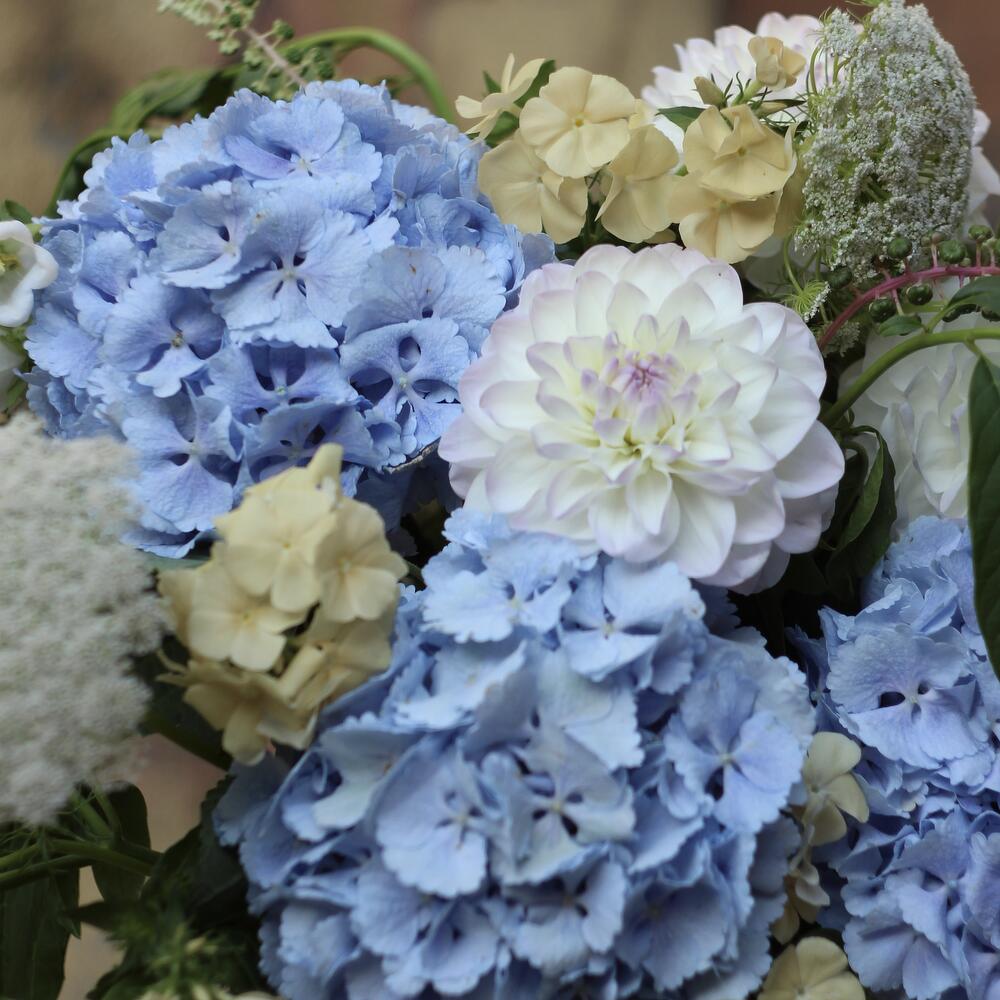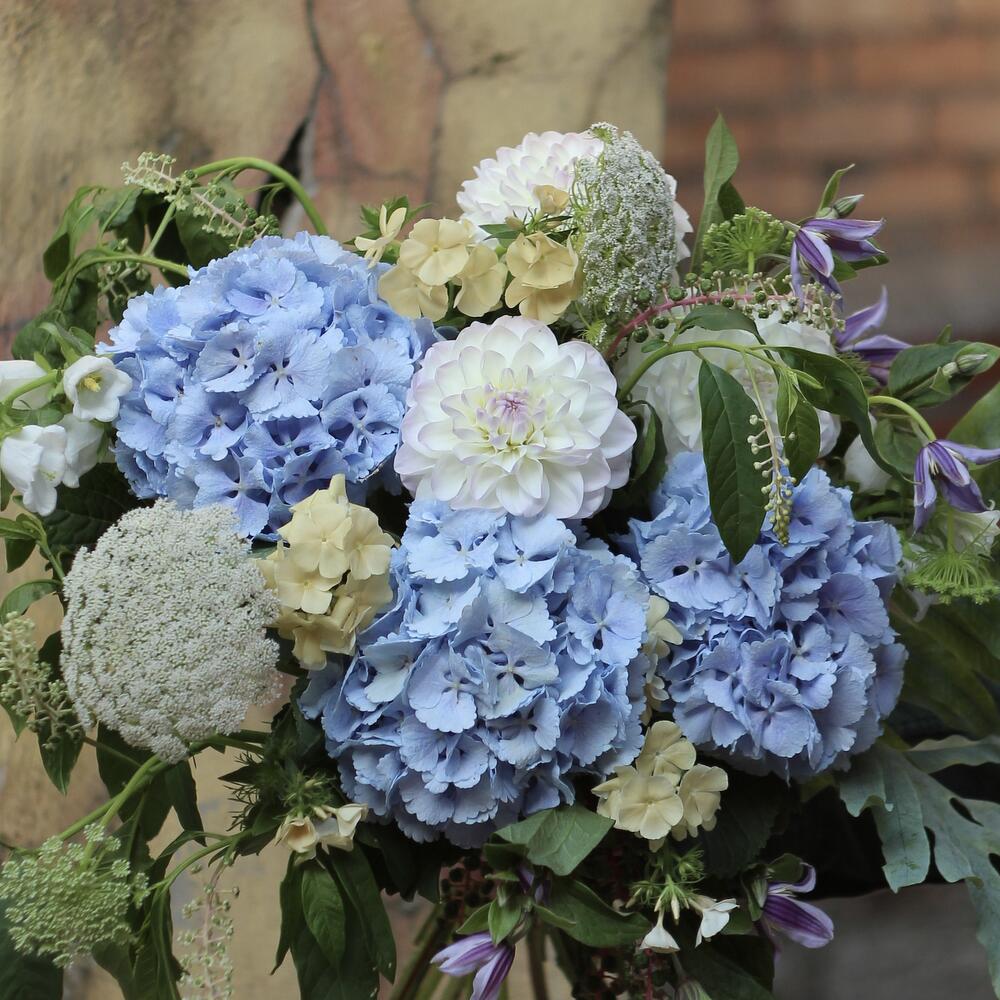 Гортензия – 3 шт.Георгина – 3 шт.флебодиум – 2 шт.Флокс – 3 шт.Амми – 2 шт.Клематис – 2 шт.Колокольчик – 2 шт.Фитолакка – 3 шт.