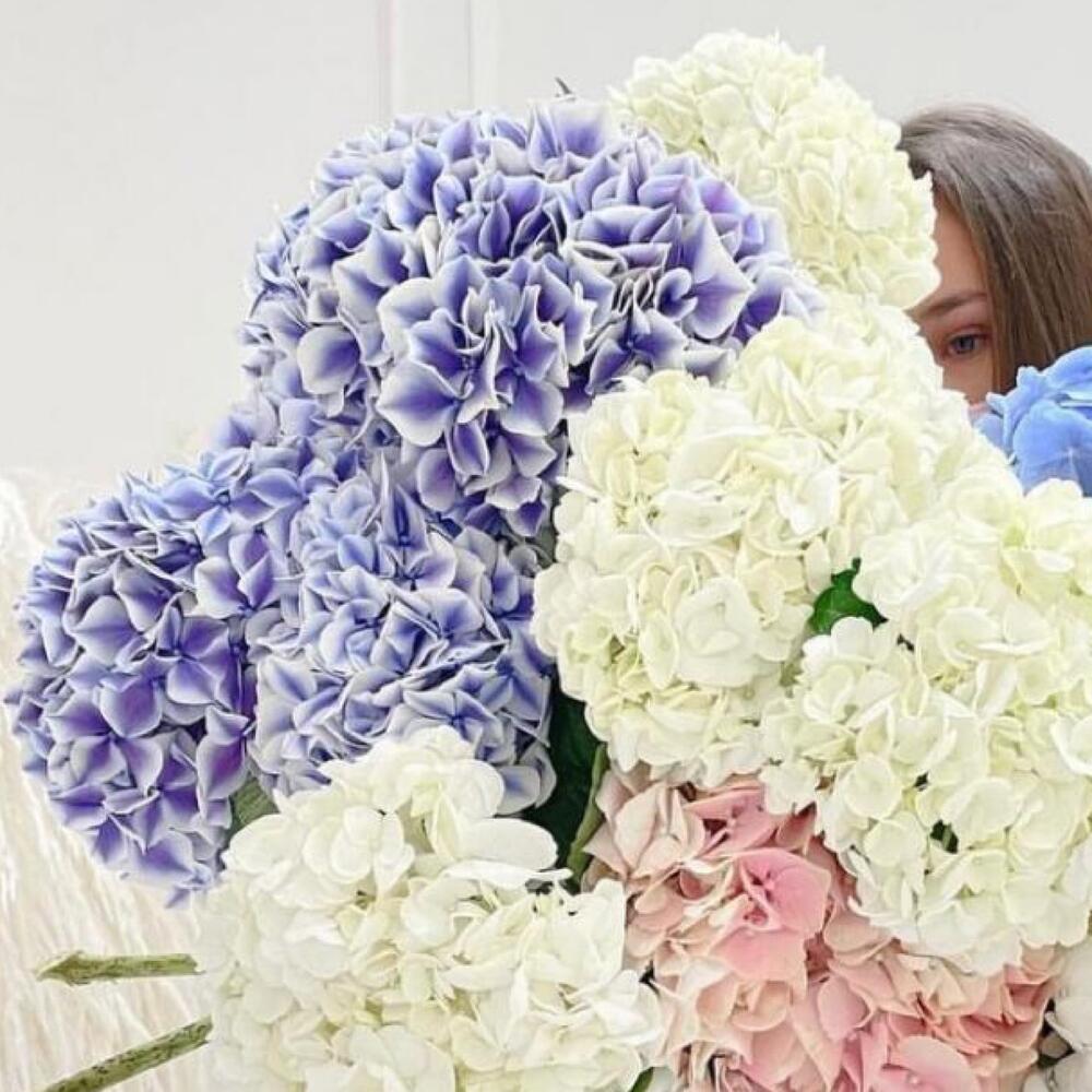 Букет из гортензий и гипсофилы «Сияющая улыбка»