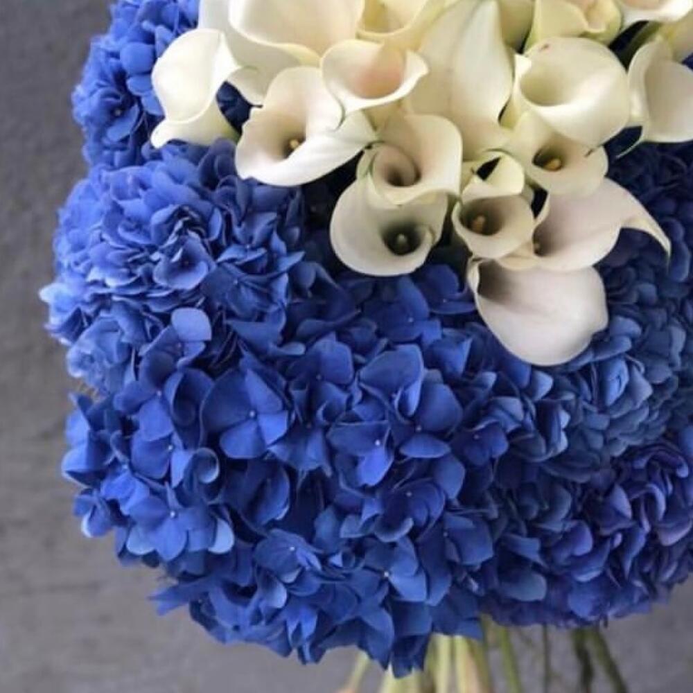 Букет из синих гортензий и белых калл