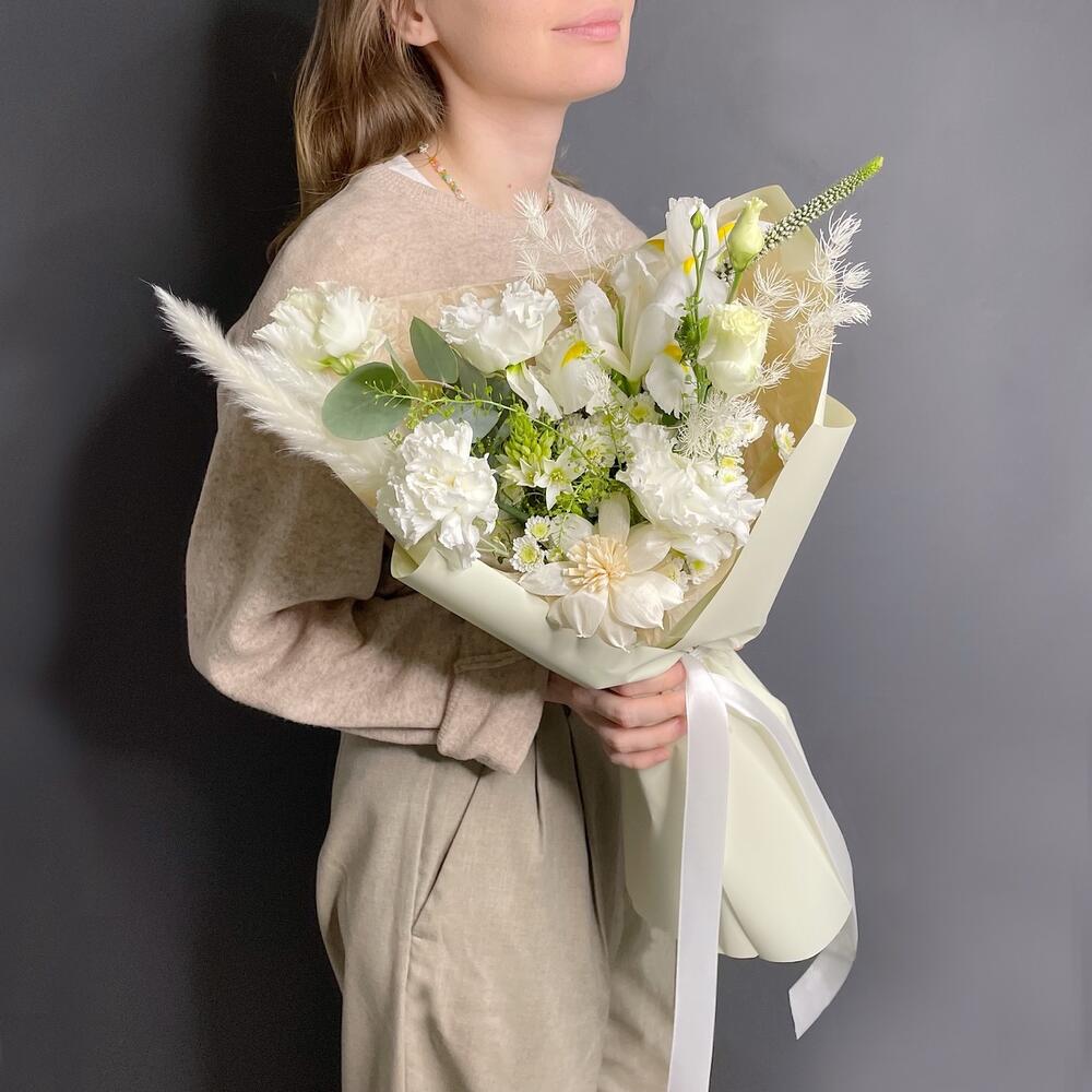 НЕЖНОЕ СУФЛЕ из пионовидной розы Джульетта и белоснежных диантусов