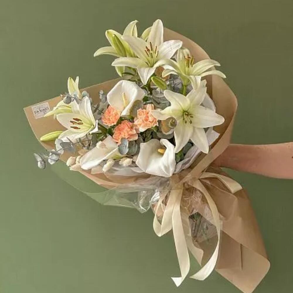 ЮЛИЯ огромный премиальный авторский букет из лилий, фрезий и альстромерии