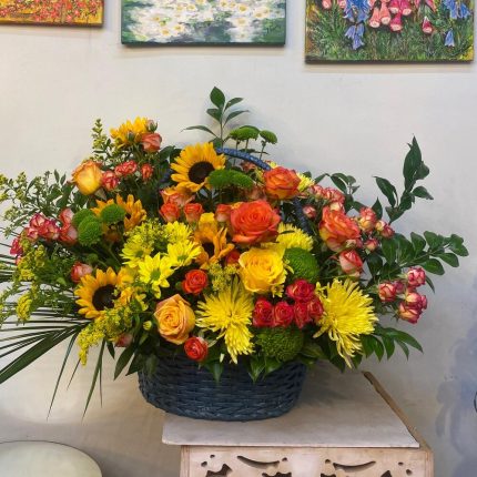 Ищете блестящий способ привнести в свой день немного цвета и радости? Посмотрите на нашу корзину цветов! Эта корзина наполнена таким разнообразием цветов, что вам покажется, будто вы гуляете по радужному саду.