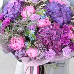 Лиловый поцелуй – Гортензии, пионы и восковой мирт