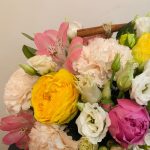 Корзина с пионами,пионовидными розами, гвоздиками и клематисом