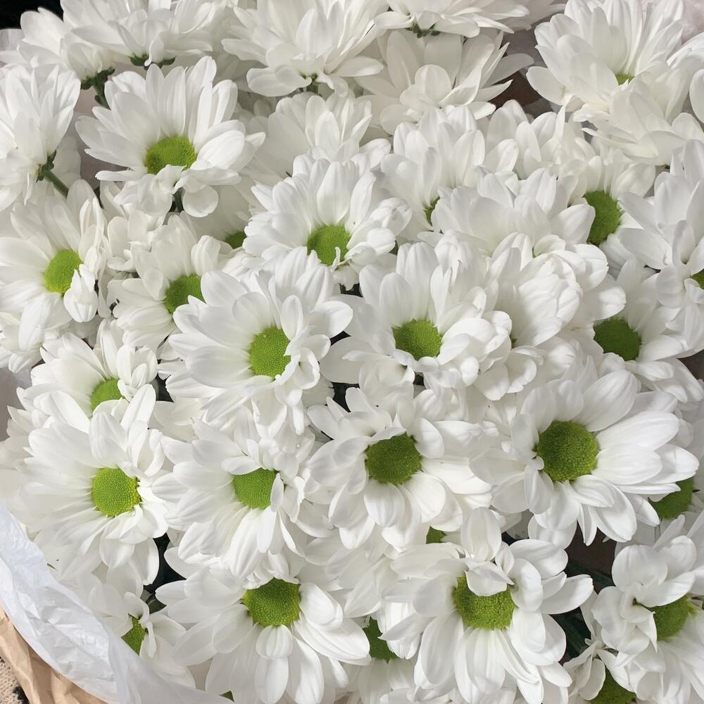 Букет из 7 белых кустовых хризантем в стильной упаковке