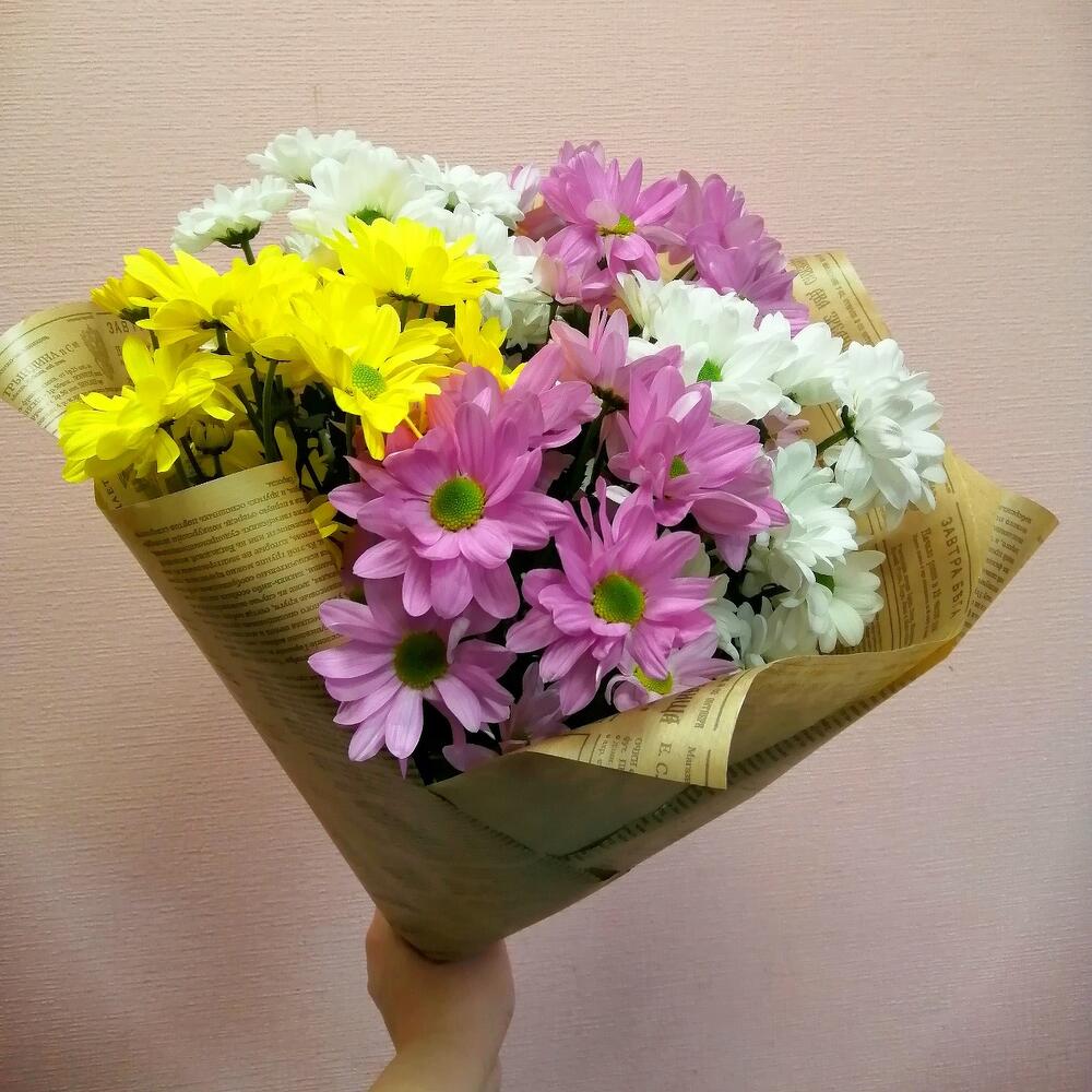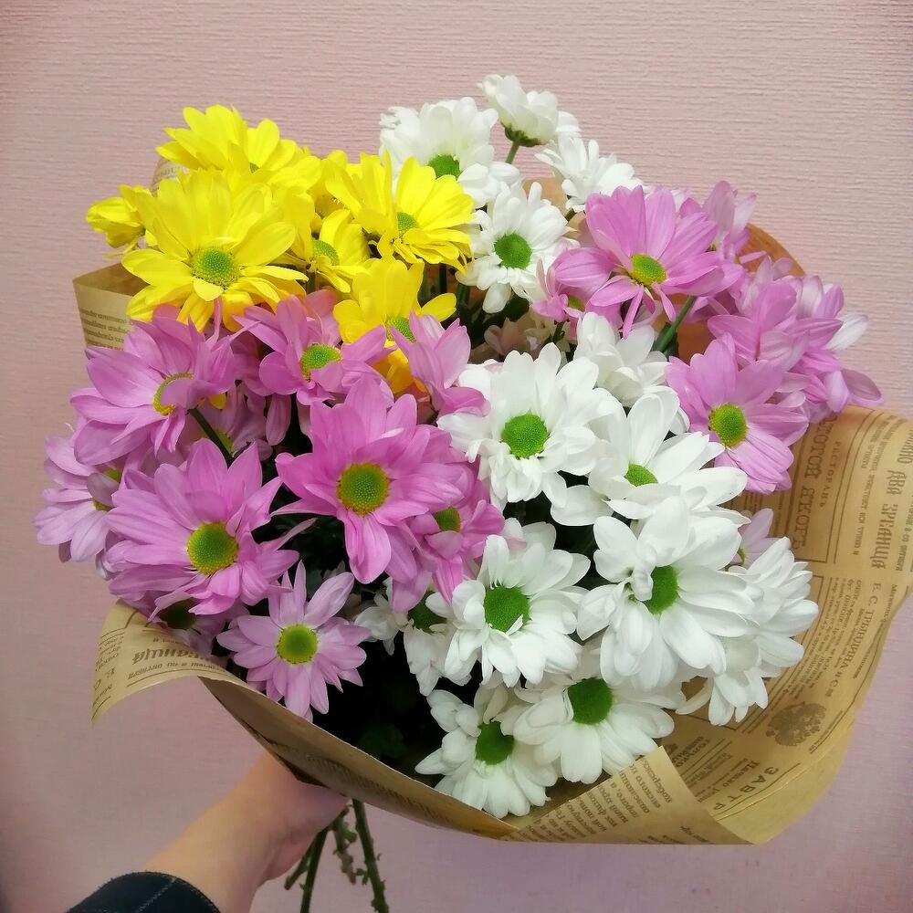 Букет Разноцветные ромашки из хризантемы