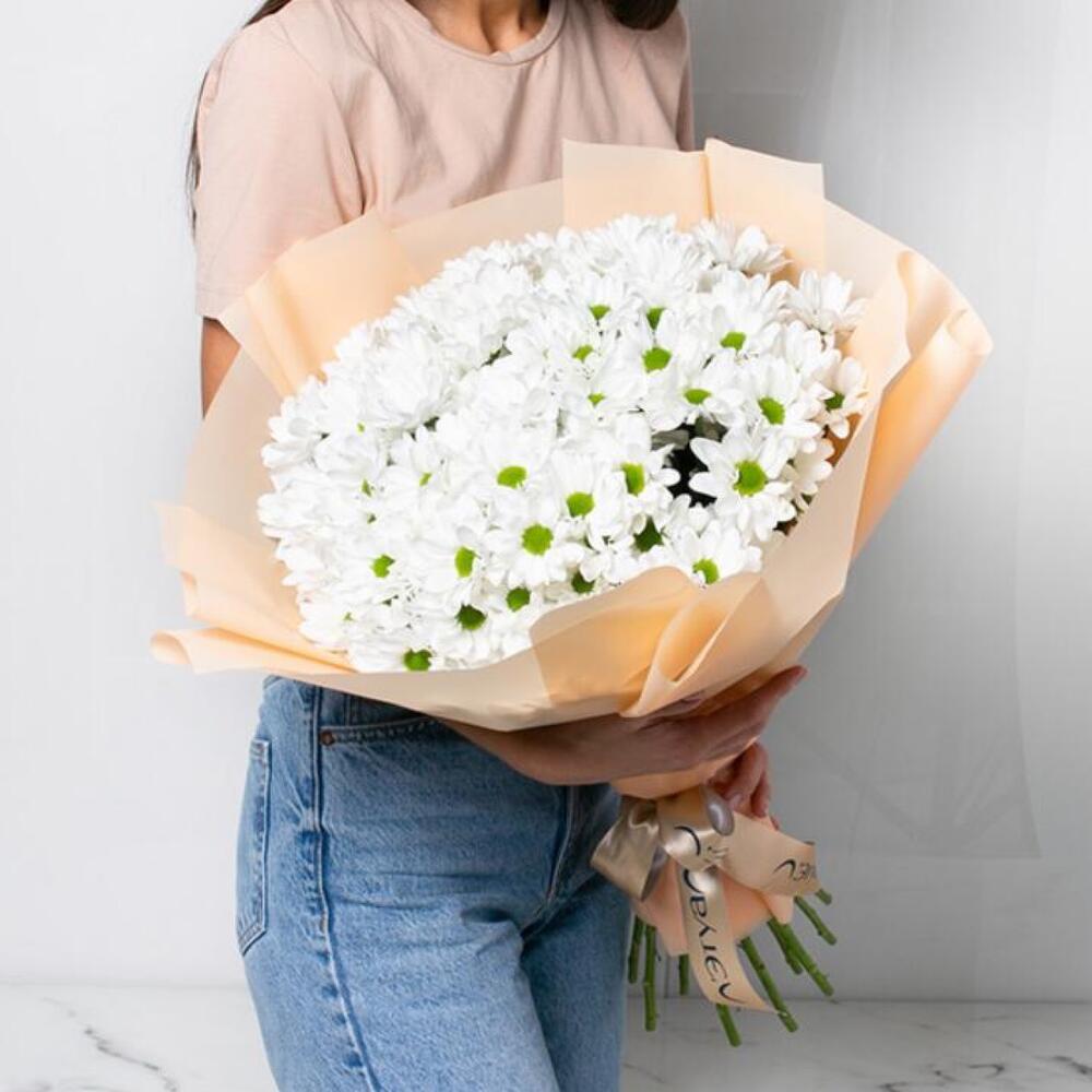 Букет “Ромашковое поле” из свежих хризантем 15 шт. (55 см)