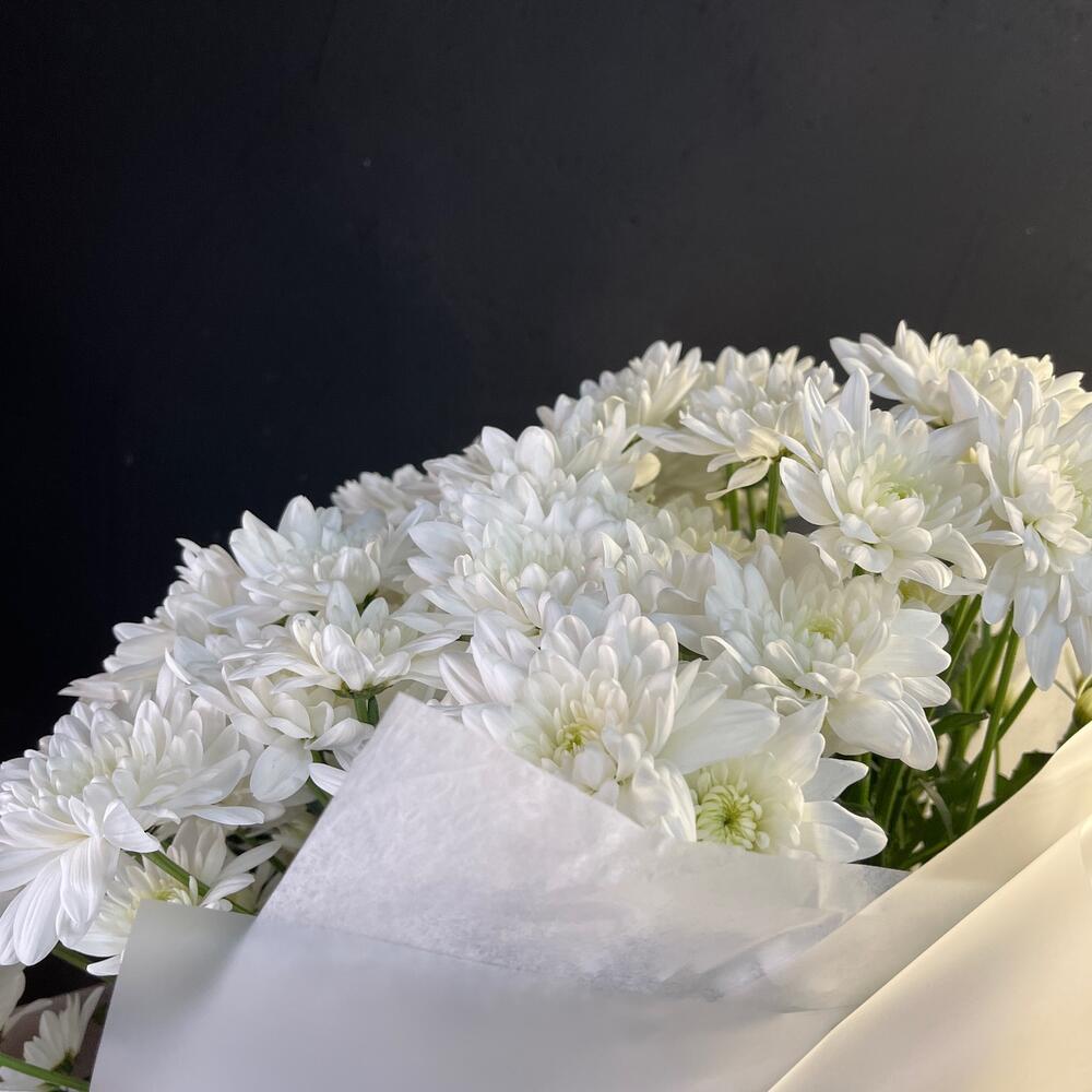 Открыточка с вашими пожеланиями – 1 шт.Хризантема кустовая зембла белая – 9 шт.Упаковка матовая – 1 шт.