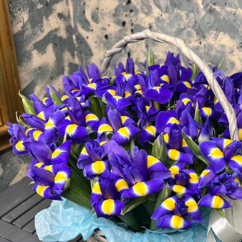 Корзина с синими ирисами