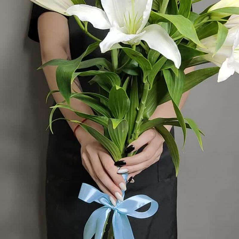 Лилия белая – 3 шт.Лента атласная – 1 шт.