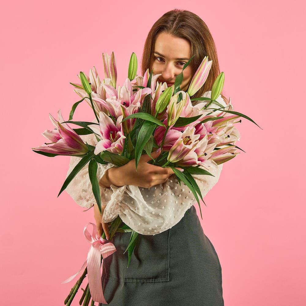 Лента атласная – 1 шт.лилия (розовый) – 7 шт.