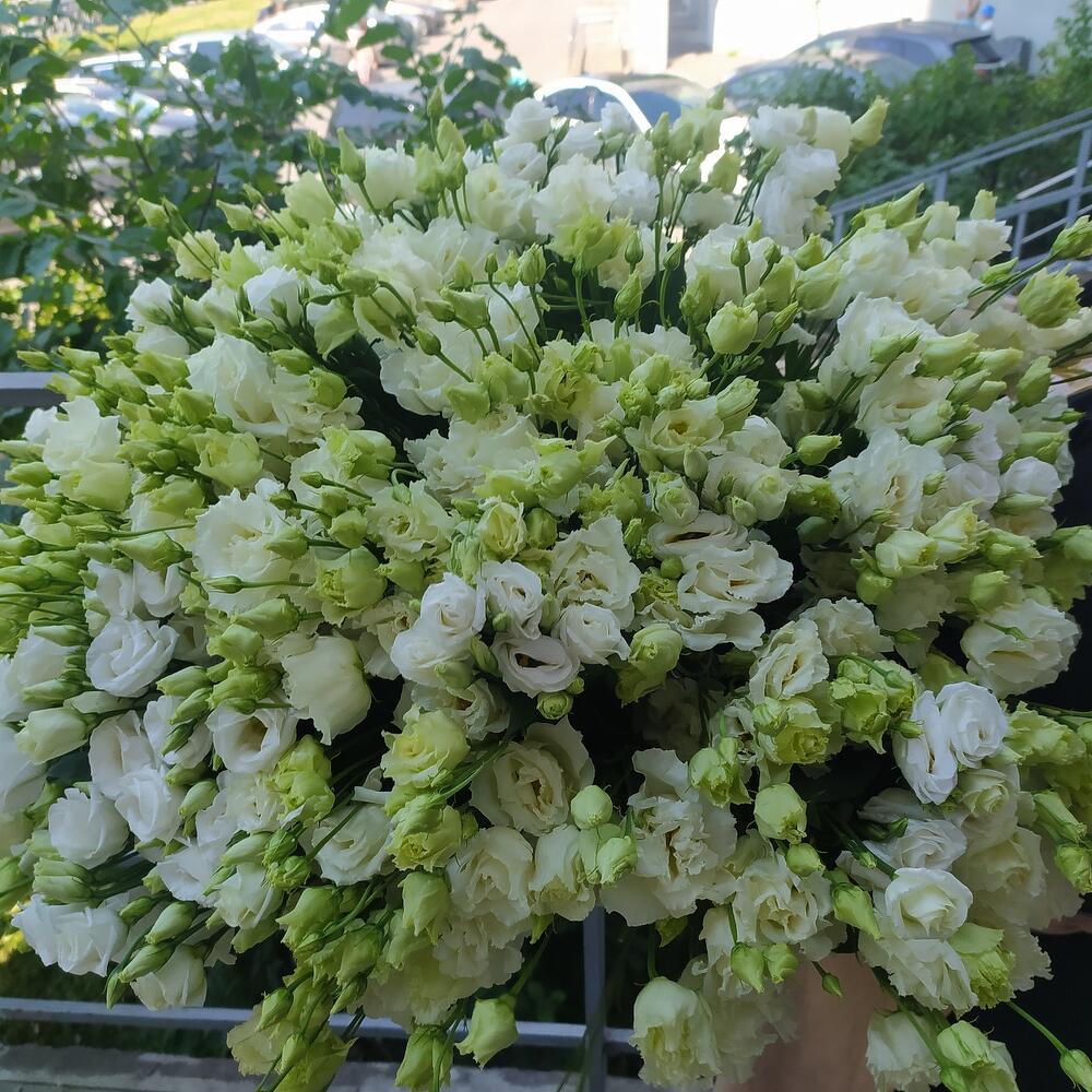 лизиантус эустома белый – 101 шт.Лента атласная – 1 шт.