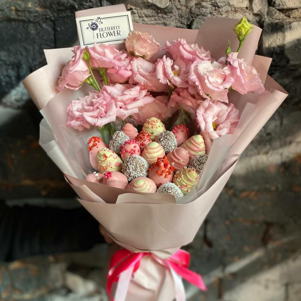 Нежный букет из хлопка "Клубничное настроение"