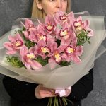 Букет из 11 орхидей с зеленью