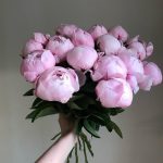 Лента атласная – 2 шт.Пион розовый – 15 шт.