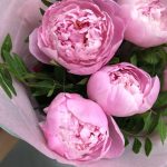 Атласная лента – 1 шт.Пион Сара Бернар – 5 шт.яркая упаковка – 2 шт.