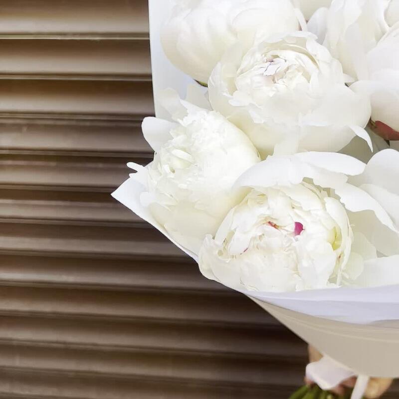 Лента атласная – 2 шт.Тишью – 2 шт.Дизайнерская упаковка – 2 шт.пион белый ароматный – 15 шт.