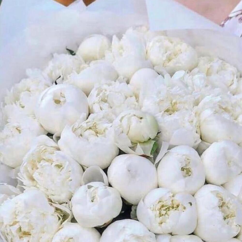 Пион белый – 51 шт.Упаковка дизайнерская – 2 шт.Лента атласная – 2 шт.Открыточка с вашими пожеланиями – 1 шт.хорошее настроение – 100 шт.инструкция по уходу за цветами – 1 шт.коробка переноска – 1 шт.Кризал – 1 шт.