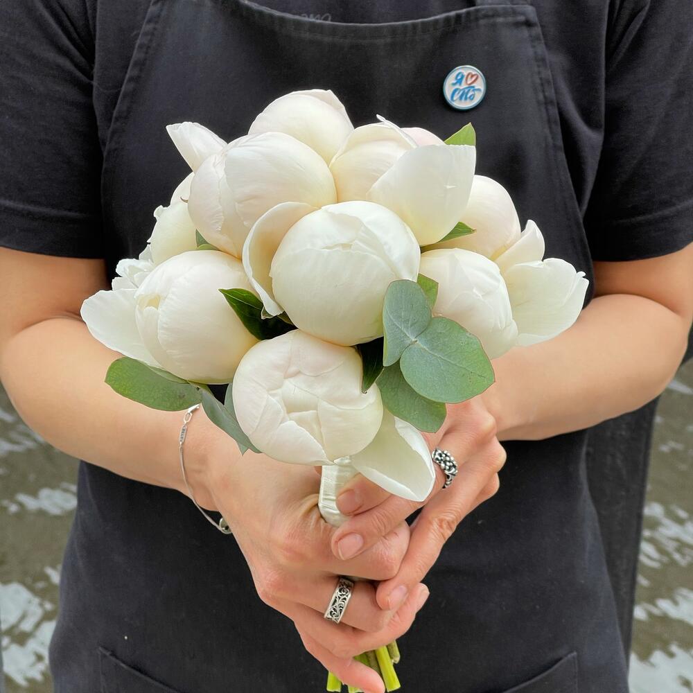 Лента – 2 шт.Пион – 11 шт.Эвкалипт – 1 шт.Булавка – 1 шт.