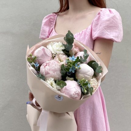 Пионы Голландия 7, Твидия 5, эвкалипт 1