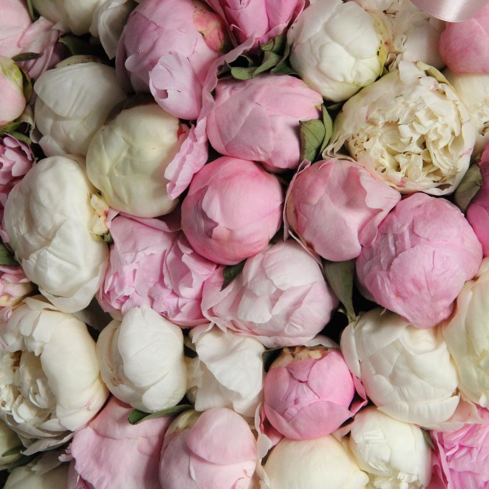 Эвкалипт – 15 шт.Лента атласная – 3 шт.пион франция – 75 шт.
