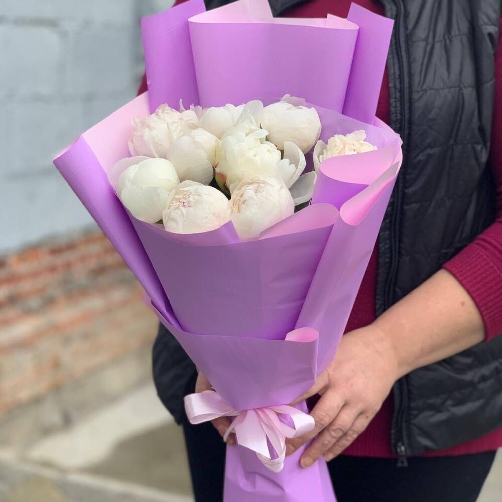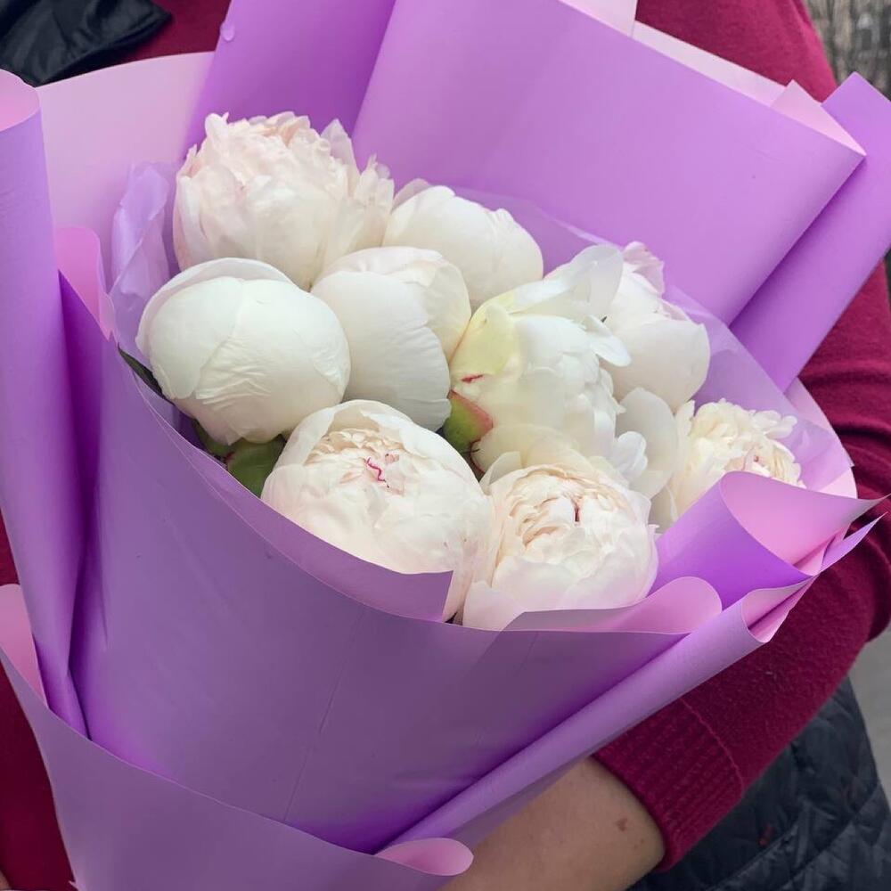 Монобукет белых пионов 9 шт