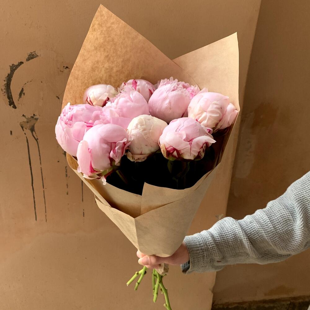 Крафтовая упаковка – 1 шт.пионы розовые – 9 шт.