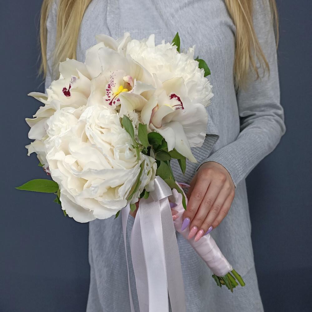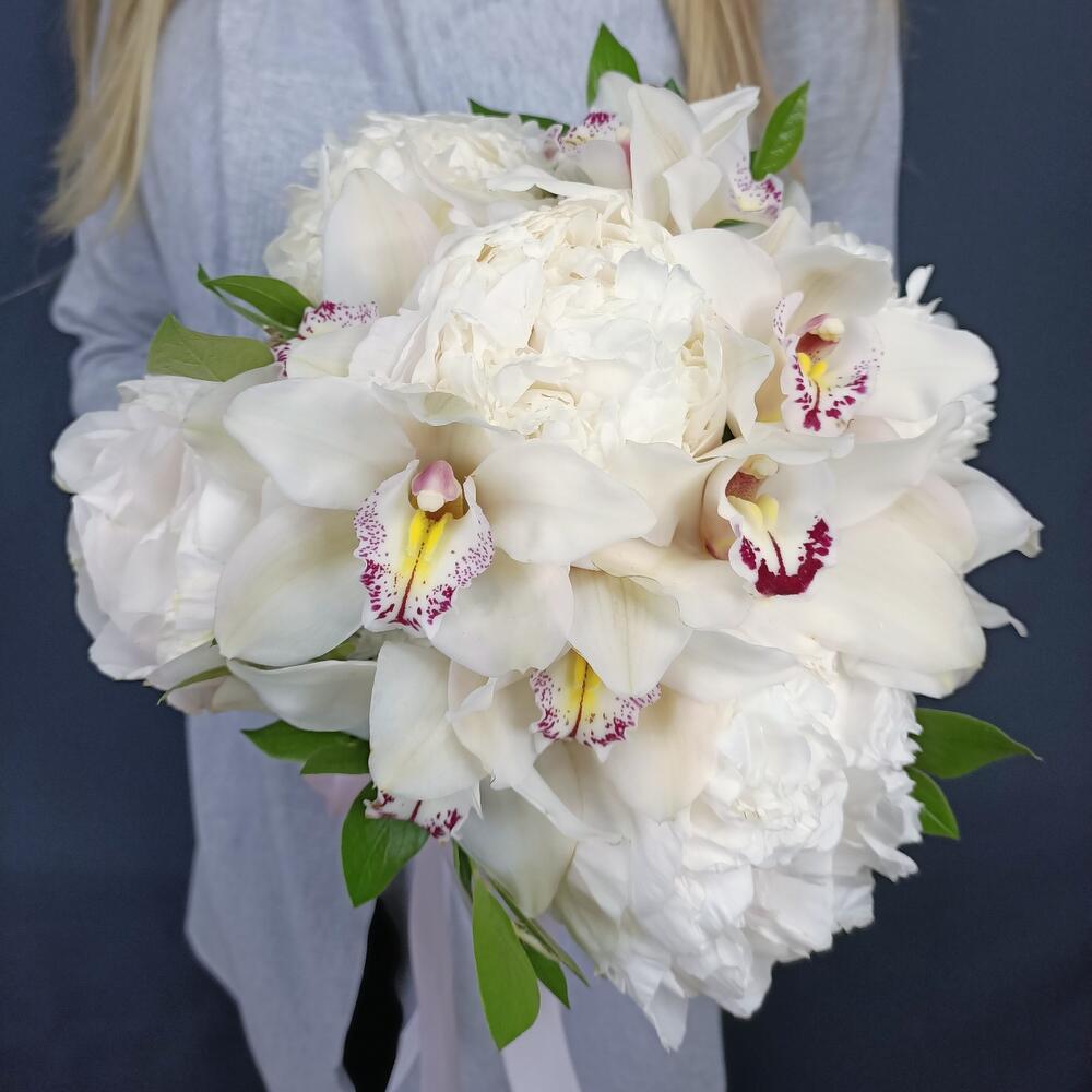Пахнущий свадебный букет из пушистых пионов и элегантных орхидей ️