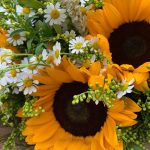 Букет с подсолнухами, ромашками и солидаго «Летнее танго»