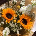 Краспедия – 2 шт.Лента – 1 шт.Лимониум – 1 шт.Статица – 2 шт.Тишью – 2 шт.Пленка матовая – 3 шт.маттиола белая ароматная – 1 шт.подсолнух гелиантус – 2 шт.