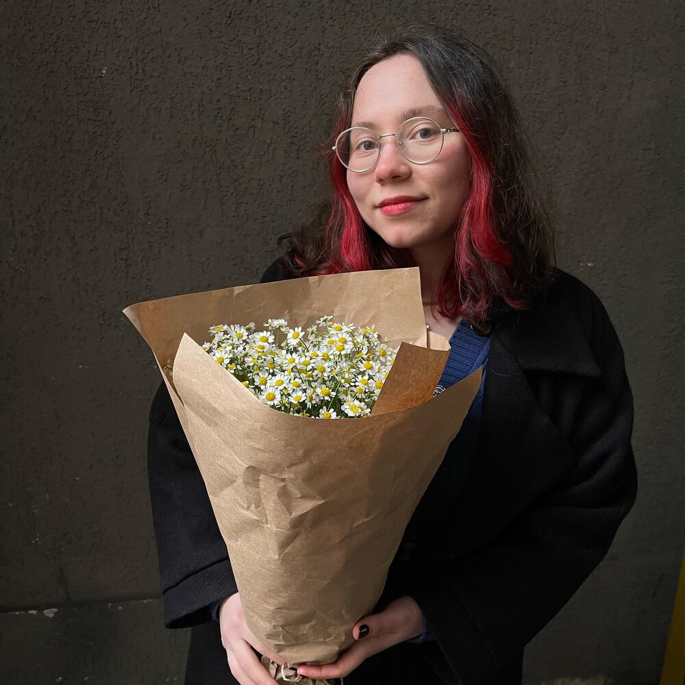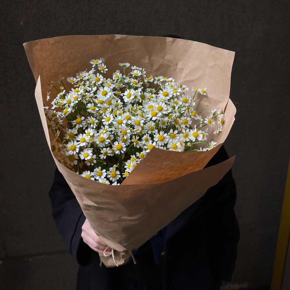 Букет 22: кустовые ромашки в жатом крафте