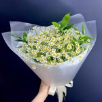 Рускус – 3 шт.Упаковка дизайнерская – 1 шт.Матрикария (ромашка) – 9 шт.