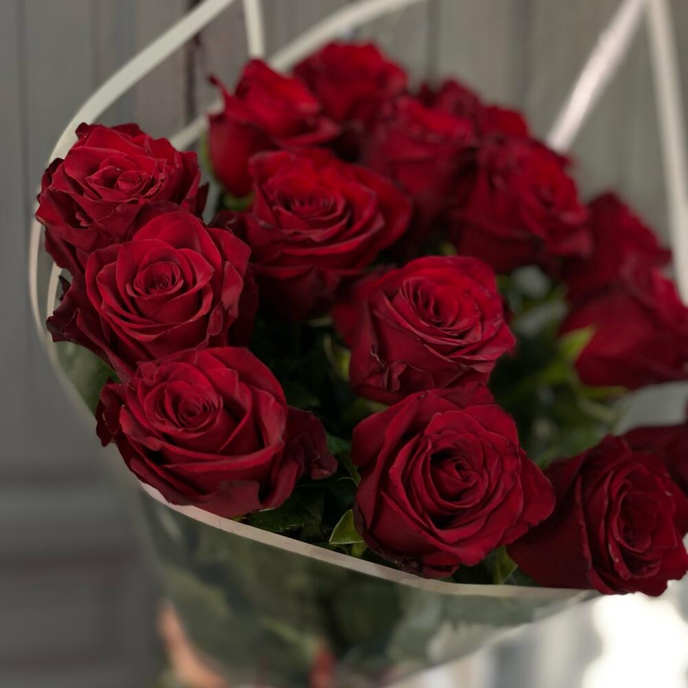 17 красных роз 70 см