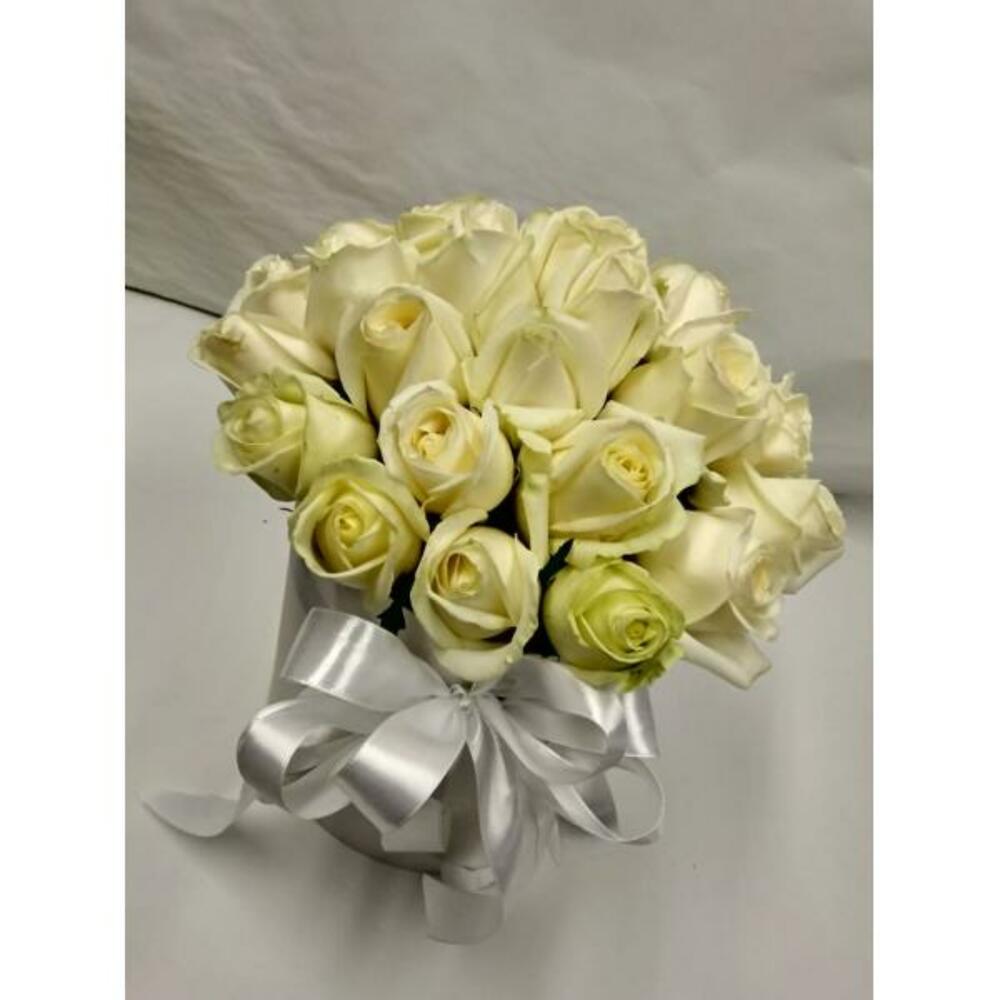 розы – 25 шт.Шляпная коробка – 1 шт.доставка – 3 шт.